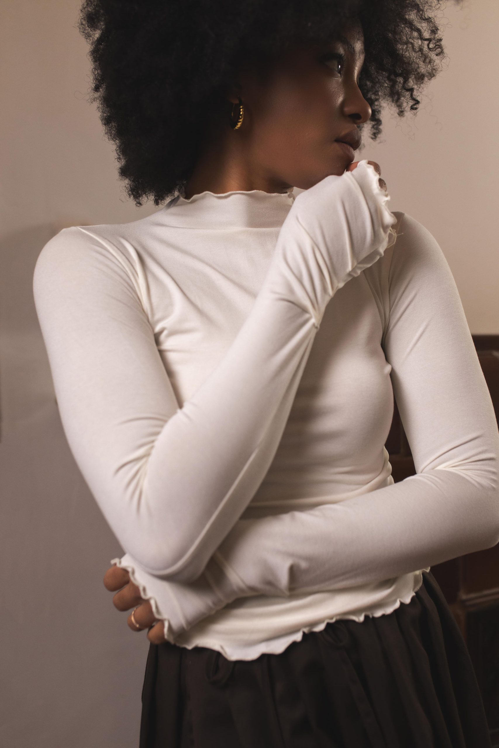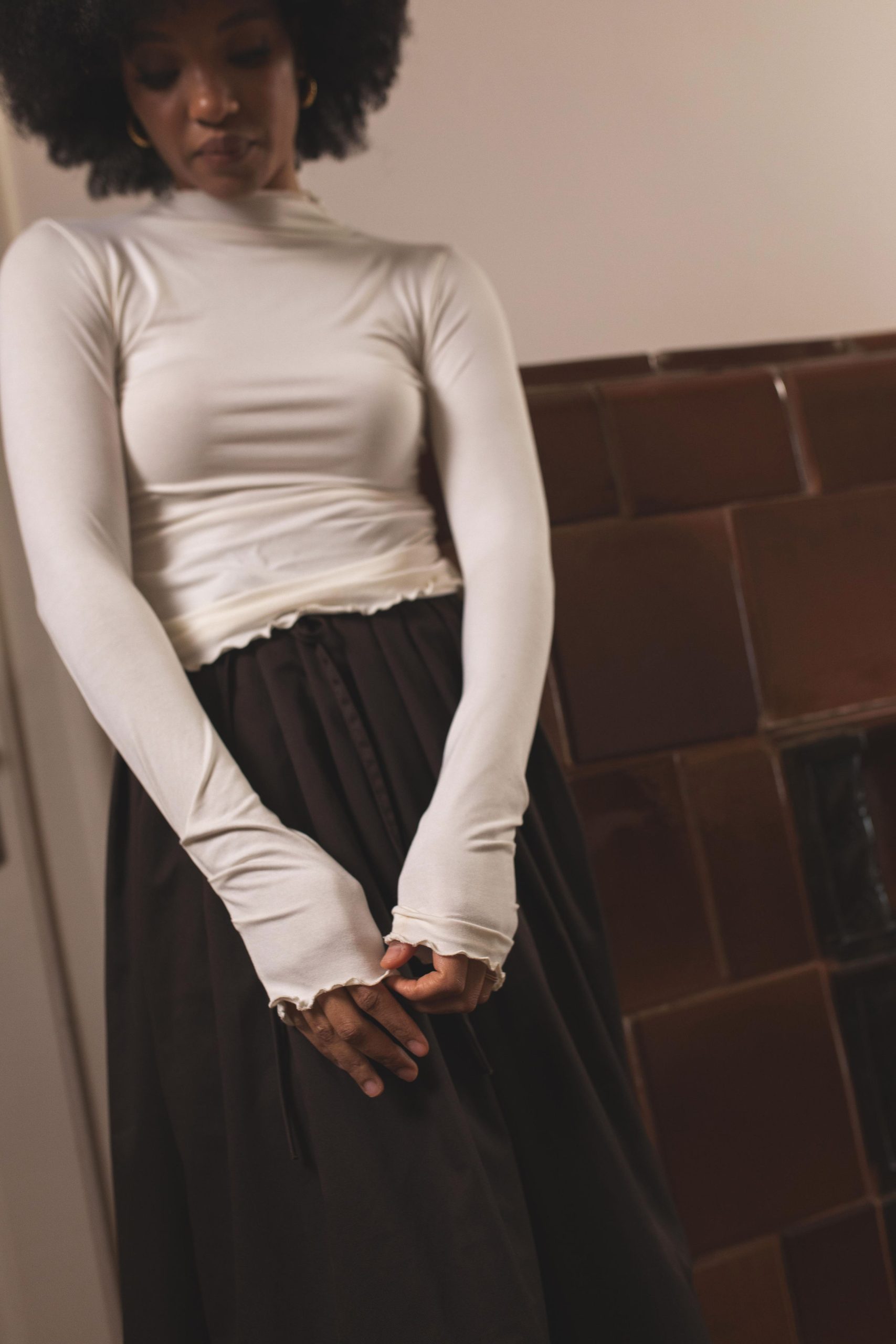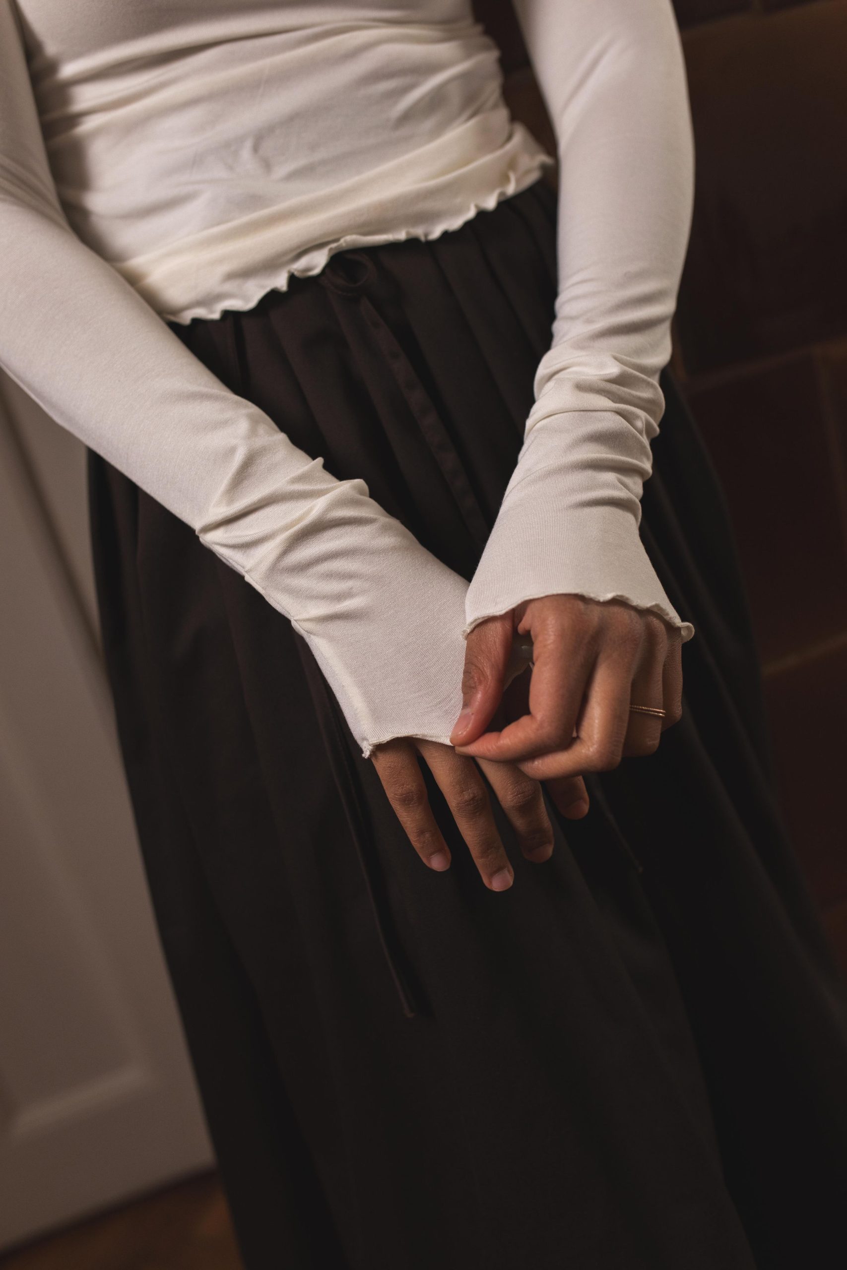 Bluza koju sam osmislila da možete da je nosite uz Tutu suknje, ali i uz sve ostalo. Ima zanimljiv detalj na krajevima rukava, bebilok obradu i idealne je dužine da se može nositi na dubok struk upasana, ali i puštena. Zbog procenta elastina predivno prijanja na telo. Mekana, fina, graciozna.
