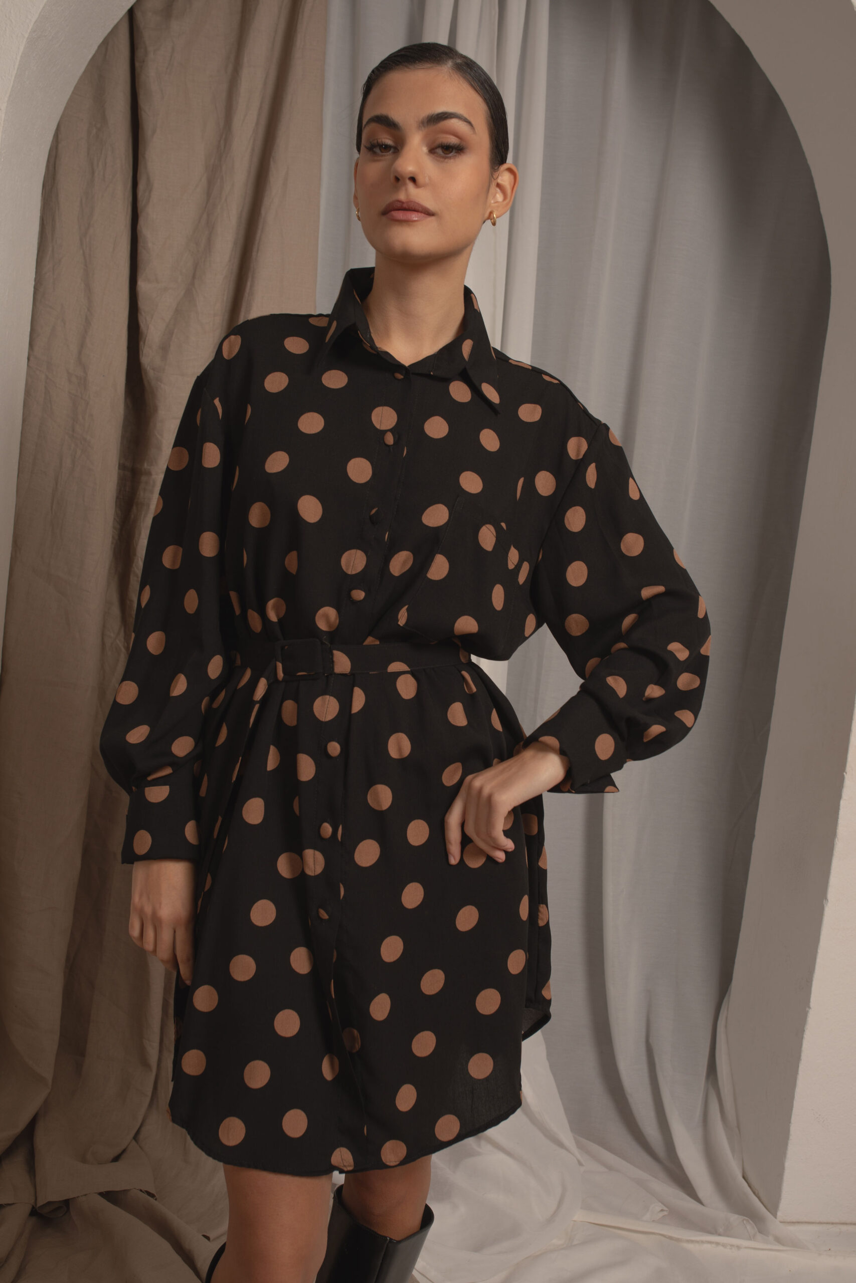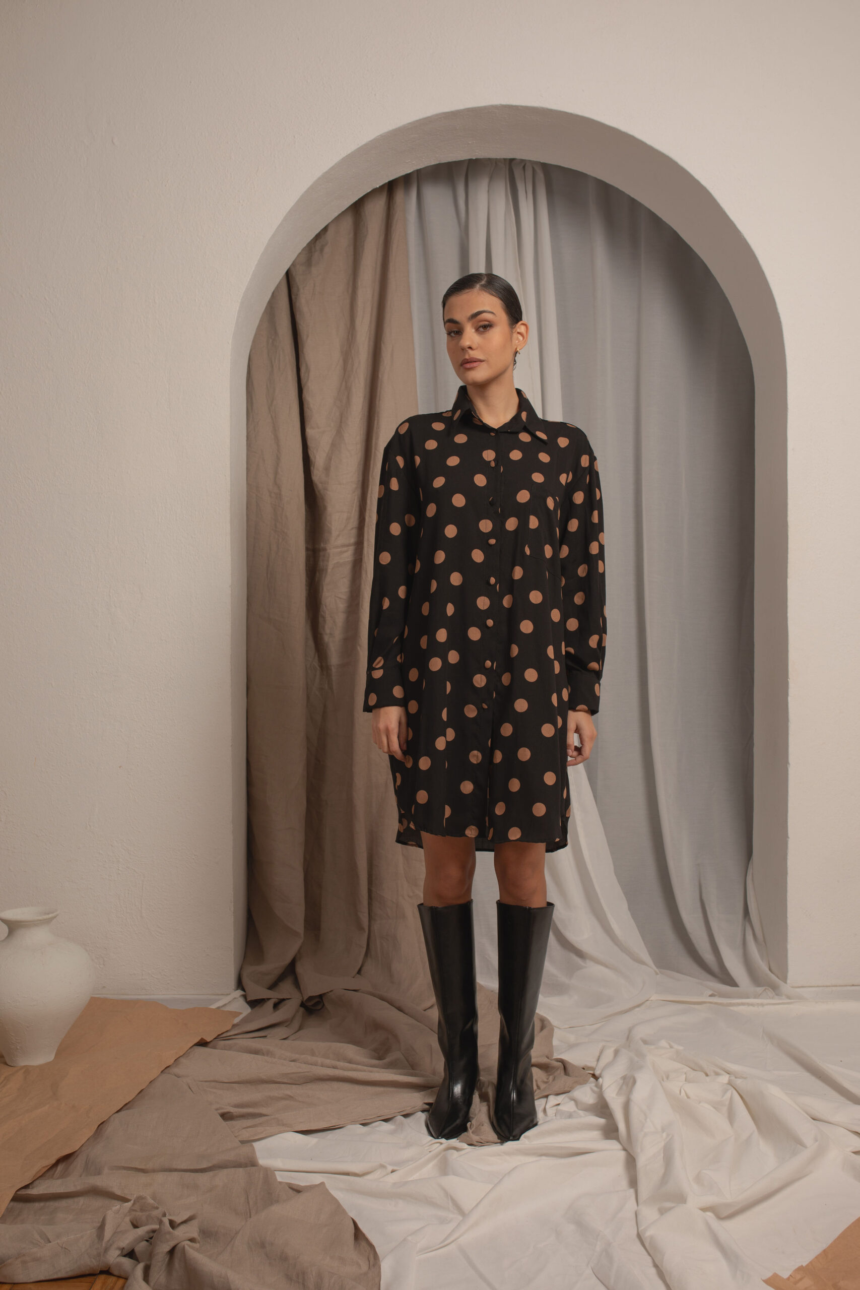Bezvremenska, večna i razigrana Polka. Morala je biti deo i ove kolekcije. Kopča se celom dužinom presvučenim dugmićima od istog materijala ,a tu je i presvučena šnala za pojasić, kojim može da se ustruči po želji. Na skoro svakom dugmencetu ćete naći deo tufne. Veliki trud i pažnja su uloženi za sve ove detalje.
